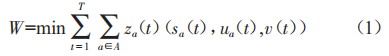 式中 ,za(1)表示時刻1進入路段a的實際阻抗::a(1)表示時刻1路段a的交通量::EQ \* jc3 \* hps10 \o\al(\s\up 3((1+l)表示時刻(1+l)進入路段a將到終點b的交通量:sEQ \* jc3 \* hps10 \o\al(\s\up 3((1)表示時刻1進入路段a將到終點b的駛?cè)肓?uEQ \* jc3 \* hps10 \o\al(\s\up 3((1)表示時刻1路段ab的駛出量。