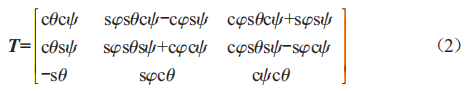 式中,T為旋轉(zhuǎn)矩陣,P為上平臺(tái)質(zhì)心坐標(biāo)在慣性坐標(biāo)系的坐標(biāo)。