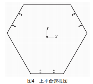 上平臺(tái)為左右對(duì)稱六邊形,在其上方切制圓孔,如圖4所示。