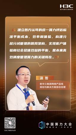 當(dāng)前,算力呈現(xiàn)出異構(gòu)化、共享化的發(fā)展趨勢。在算網(wǎng)深度融合的背景下,網(wǎng)絡(luò)已從單純的連接轉(zhuǎn)為構(gòu)建泛在算力的重要角色。新華三認(rèn)為,建立各方認(rèn)可的統(tǒng)一算力評估標(biāo)準(zhǔn)平衡成本、效率和體驗(yàn),構(gòu)建分層分域管理的算網(wǎng)架構(gòu),實(shí)現(xiàn)客戶體驗(yàn)和社會總體效益的平衡,是未來高效調(diào)度管理算力的關(guān)鍵所在。