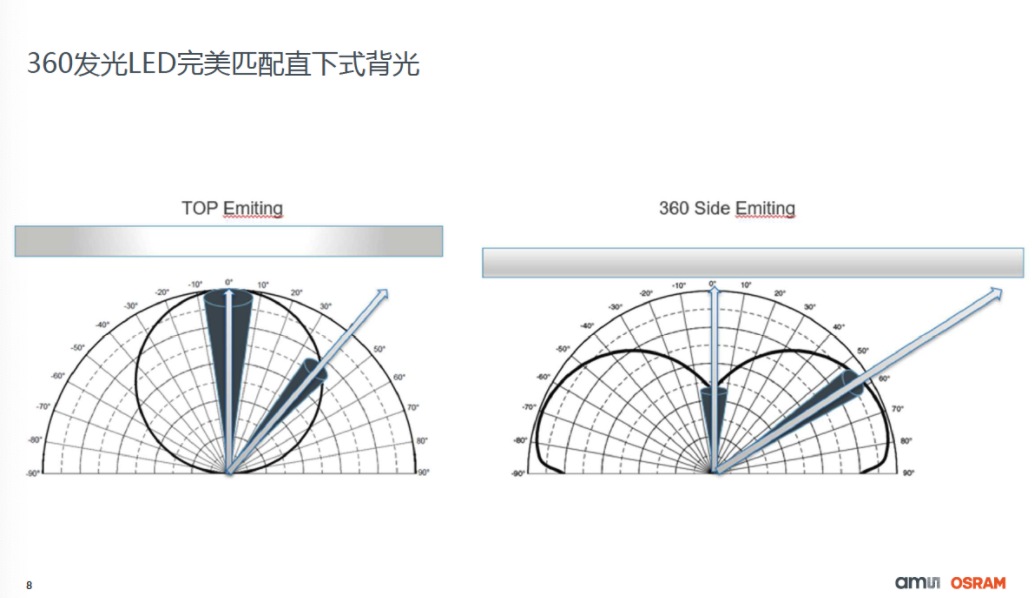ams OSRAM針對直下式背光主推的產(chǎn)品為SYNIOS E1515,它能夠?qū)崿F(xiàn)獨一無二的360度全角度的發(fā)光。