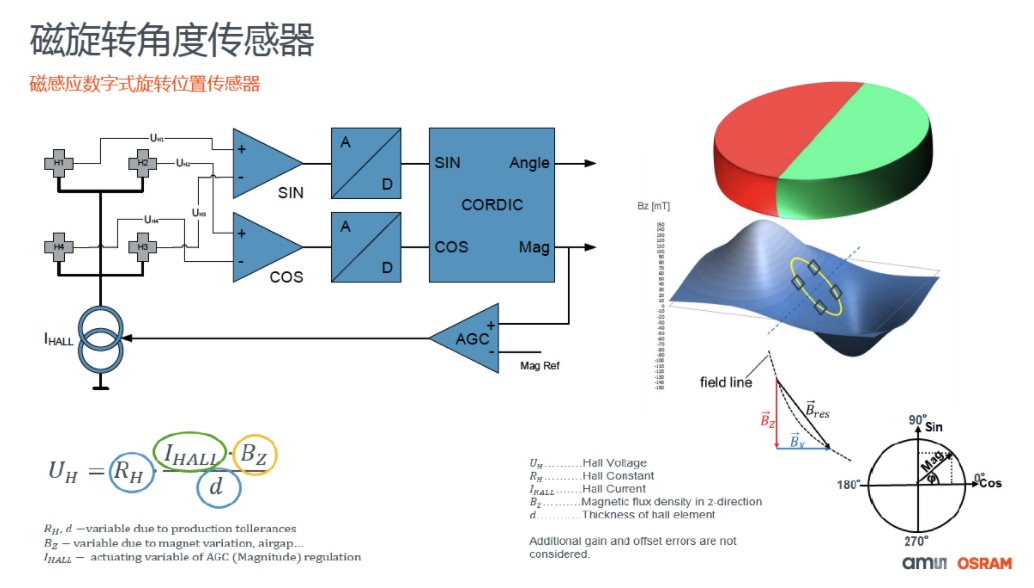 據(jù)艾邁斯歐司朗汽車客戶技術經(jīng)理李銘豪分享,這種Z組分量檢測是真正磁感應垂直方向的分量,因此有著非常好的線性。很多公司采用的不同原理,其中會摻雜到水平方向的分量。ams OSRAM的這種檢測方法中采用了差分的工作原理,可以抵消掉水平方向分量,而其他公司的產(chǎn)品如果沒有差分抵消,反而會將其放大兩倍。