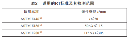 適用的射線探傷標(biāo)準(zhǔn)及其所能達(dá)到的檢測范圍如表2所示。