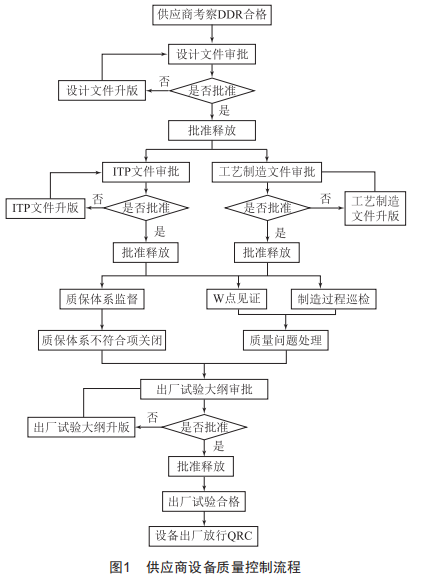 我公司實(shí)施的燃煤電站國(guó)際EPC項(xiàng)目,供應(yīng)商設(shè)備質(zhì)量控制流程如圖1所示。