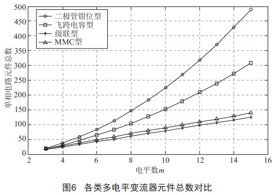 結(jié)合圖6所展示的隨著電平數(shù)量增加各類變流器元件數(shù)量變化趨勢可見,在高壓、多電平的應(yīng)用場合,級聯(lián)型與MMC型變流器在元件數(shù)量上占有很大的優(yōu)勢。雖然MMC在各方面性能,尤其是諧波特性等方面有著優(yōu)越的表現(xiàn),但是相同條件下半橋電路數(shù)量較多、結(jié)構(gòu)相對復(fù)雜,變流器需要的支撐電容及信號采樣等配套設(shè)備增多,且環(huán)流抑制增加了控制系統(tǒng)的設(shè)計(jì)難度,綜合成本較高。因此,從當(dāng)前實(shí)際工程應(yīng)用情況來看,級聯(lián)型結(jié)構(gòu)具有最少的元件數(shù)量、理想的輸出效果、模塊化的設(shè)計(jì)過程以及相對簡單的控制策略,是同相供電系統(tǒng)補(bǔ)償裝置較為理想的選型。