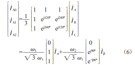 式中,Ⅰ·A為A相相電流:Ⅰ·B為B相相電流:Ⅰ·β為β相電流。