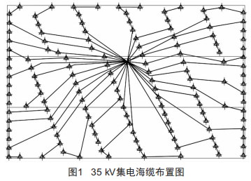 近海深水區(qū)域900Mw大型海上風電項目的35kV集電海纜布置如圖1所示。