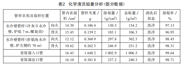 (2)腐蝕指示片的平均腐蝕速度小于8g/(m2·h)為合格,腐蝕總量小于80g/m2,除垢率大于90%。
