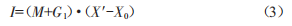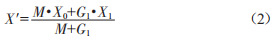 如圖1所示,假設(shè)裝修前轎廂的重心位置距離A-B基線為X0,轎廂重量為M,轎廂裝修重量為G1,裝修重量重心位置距離A-B基線為X1。如果不考慮轎廂運(yùn)動(dòng)過程中的動(dòng)載荷,可得轎廂裝修后的重心位置X'。