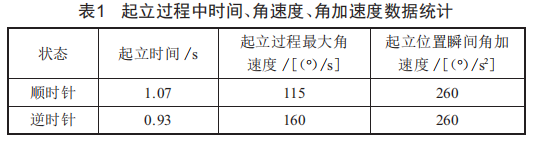 (2)曲柄順時(shí)針旋轉(zhuǎn)時(shí)起立過(guò)程中最大角速度[115(9)/s]<逆時(shí)針旋轉(zhuǎn)時(shí)起立過(guò)程中最大角速度[160(9)/s]。