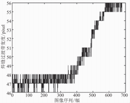 本文所獲取的焊縫圖像的過(guò)渡帶區(qū)域蘊(yùn)含焊縫中心位置信息和焊縫偏差信息,并與文中視覺(jué)傳感器的成像原理密切相關(guān),因此,針對(duì)焊縫過(guò)渡帶區(qū)域展開(kāi)研究,提取焊縫過(guò)渡帶寬度數(shù)據(jù),探討對(duì)焊縫過(guò)渡帶寬度進(jìn)行預(yù)測(cè)的方法。