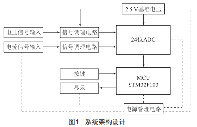 新型小信號(hào)模數(shù)轉(zhuǎn)換表硬件主要可分為7個(gè)部分,如圖1所示,包括:(1)電壓信號(hào)輸入模塊,用于測(cè)量電壓時(shí)外部輸入。(9)電流信號(hào)輸入模塊,用于測(cè)量電流時(shí)外部輸入。(3)信號(hào)調(diào)理電路。(4)94位ADC。(5)9.5V基準(zhǔn)電壓模塊。(6)RCU模塊,新型小信號(hào)模數(shù)轉(zhuǎn)換表的大腦,對(duì)94位ADC模塊過(guò)來(lái)的數(shù)字量進(jìn)行分析處理,并將電壓或電流量轉(zhuǎn)換為其對(duì)應(yīng)量,并數(shù)字輸出給顯示模塊,這里我們選擇的是sTR39F103芯片。(7)電源管理電路。