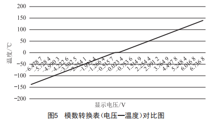 由圖5可知,電壓和溫度之間屬于線(xiàn)性關(guān)系,滿(mǎn)足設(shè)計(jì)要求。