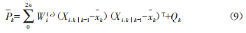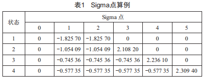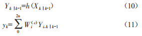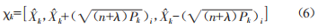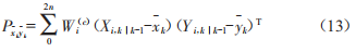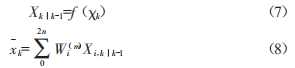 其中Xi,klk-1為Xk1k-1的第i列向量,值得注意的是,做狀態(tài)預(yù)測的輸入值是經(jīng)過sigma點(diǎn)采樣得到的值。