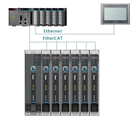 針對客戶上述需求,英威騰為客戶提供HMI+ AX系列可編程控制器+ Goodrive600系列高性能多傳動變頻器的系統(tǒng)解決方案,該方案具有張力控制性能優(yōu)異、響應(yīng)速度快、集成度高、布線美觀等特點。