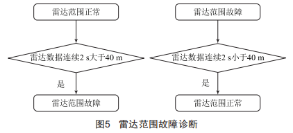 雷達(dá)故障主要分為雷達(dá)測量范圍故障和雷達(dá)通信故障,兩種故障只要發(fā)生一個(gè)就判定雷達(dá)故障,都沒有發(fā)生則判定雷達(dá)正常。