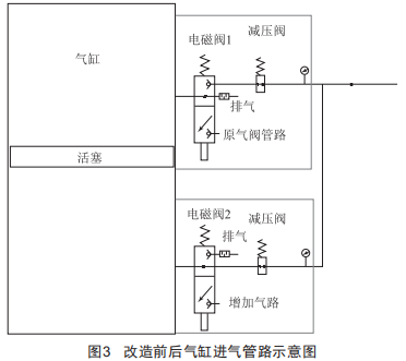 改進前后氣缸進氣管路示意圖如圖3所示。