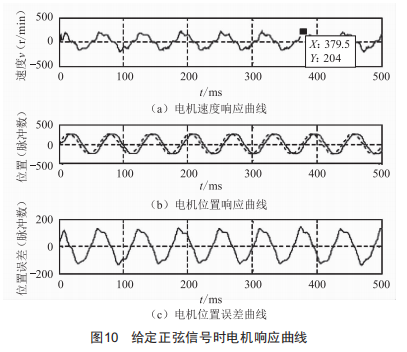 (3)給定正弦信號(hào)時(shí)的正弦響應(yīng)曲線如圖10所示。圖中的虛線部分為給定的正弦位置信號(hào)。