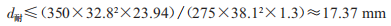 結(jié)合式(1)和式(2),采用更換耐熱導(dǎo)線進(jìn)行防風(fēng)改造時(shí),耐熱導(dǎo)線的外徑應(yīng)按下式計(jì)算: