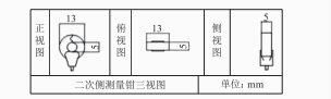 終端二次側測流鉗測量內部繼電器端子接線,鉗口內圈直徑5mm,考慮終端端子接線的間隙,外圈直徑13mm,內部設置三匝線圈,不設把手,使二次側鉗在測量時能輕易鉗取需測量的接線,且不對較為脆弱的終端端子接線造成破壞,二次側鉗內部設置兩組彈簧結構,使內部線圈測量時可靠閉合成環(huán),二次側測量鉗結構及二次側測量鉗開合狀態(tài)結構如圖2、圖3所示。