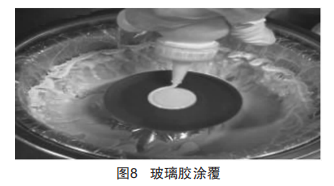 第一步:玻璃膠涂覆前的預浸潤(圖7)。目的是增加玻璃膠和硅片的浸潤性,上玻璃膠前的預處理,很大程度上決定了玻璃涂覆時氣孔產(chǎn)生比例的高低。