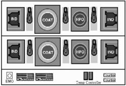 工位工作區(qū)域:如圖l0所示,工位區(qū)域可以完成晶片自動傳輸,從進料的晶舟到出料的晶舟全程自動傳輸、自動涂覆,所有參數(shù)都可通過固定程式設定,操作簡單方便,降低了作業(yè)員出錯概率,設備有故障報警、停機報警提示。