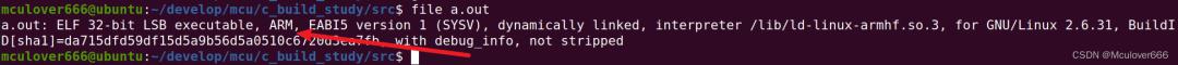 交叉編譯生成 a.out 可執(zhí)行文件,文件類型是 32 位 ARM 平臺(tái)可執(zhí)行文件。
