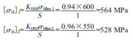 取[mH]1和[mH]2中的較小者作為該齒輪副的接觸疲勞許用應(yīng)力,即:
