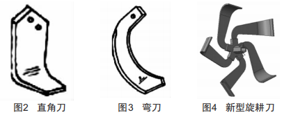 直角刀(圖2)加工方便、成本低,但不適合在雜草多的土地工作:而彎刀(圖3)能夠切斷草莖并將雜草壓向還沒有耕作的地方,適合在草多的田地工作。