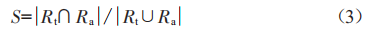 式中,跟蹤算法邊界框?yàn)镽t;手工標(biāo)注邊界框?yàn)镽a。