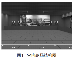 根據(jù)靶場(chǎng)槍聲頻帶寬、噪聲大、非連續(xù)、發(fā)生點(diǎn)不固定的特征,結(jié)合施工特點(diǎn)分別在左右墻面、頂面、地面以及受彈面設(shè)計(jì)并安裝不同的吸音構(gòu)件以達(dá)到吸音效果。一般室內(nèi)靶場(chǎng)結(jié)構(gòu)圖如圖1所示。