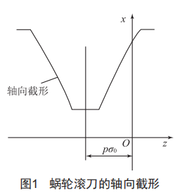 要實現(xiàn)蝸輪的仿真加工,首先是要對蝸輪滾刀進行建模,而對蝸輪滾刀建模的關(guān)鍵在于對蝸輪滾刀軸向截形的建立,其中對軸向截形的計算就是對蝸輪滾刀基本蝸桿的漸開線螺旋面軸向截形計算,從而可得蝸輪滾刀齒面。根據(jù)文獻[5]得到軸向截形方程: