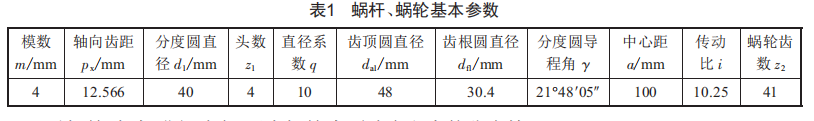 裝配好的蝸輪蝸桿副在輕微的力的作用下嚙合運轉(zhuǎn)后,蝸輪齒面上會分布有運動后的嚙合斑點。下面以表1中蝸桿、蝸輪的基本參數(shù)為例進行分析。