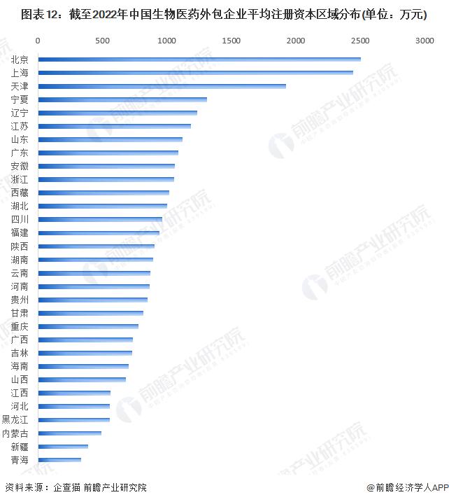 根據(jù)中國(guó)企業(yè)數(shù)據(jù)庫(kù)企查貓,目前中國(guó)生物醫(yī)藥外包企業(yè)的平均注冊(cè)資本區(qū)域分布中,北京及上海相關(guān)企業(yè)的平均注冊(cè)資本最高,北京為2502萬(wàn)元、上海為2442萬(wàn)元。此外,天津、寧夏、遼寧、江蘇、山東等10個(gè)省市的生物醫(yī)藥外包企業(yè)平均注冊(cè)規(guī)模均在1000萬(wàn)以上,規(guī)模相對(duì)較大。
