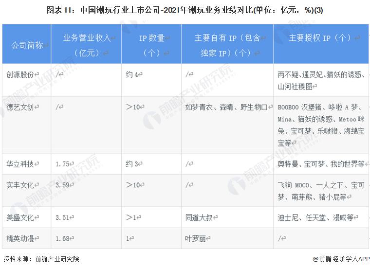 3、潮玩行業(yè)上市公司業(yè)務業(yè)績對比