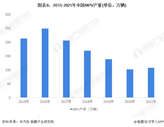 2015-2021年,我國(guó)MPV產(chǎn)量總體呈下降趨勢(shì)。受疫情影響,2020年我國(guó)MPV產(chǎn)量繼續(xù)下降至101.1萬(wàn)輛,同比減少26.8%。2021年我國(guó)MPV產(chǎn)量為107.3萬(wàn)輛,由于上年同期基數(shù)較小,同比分別增長(zhǎng)6.1%。