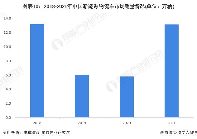 2019年受政策退坡及鋰電安全事故影響,我國(guó)2019-2020年新能源物流車(chē)整體銷(xiāo)量有所下滑,2021年隨著“碳中和”政策的發(fā)布以及新能源電池技術(shù)的完善,2021年新能源物流車(chē)銷(xiāo)量達(dá)13.1萬(wàn)輛,同比增長(zhǎng)達(dá)125.9%。