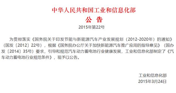 針對這種情況,2015年3月,國家工信部制定并發(fā)布了《汽車動力蓄電池行業(yè)規(guī)范條件》,從企業(yè)基本要求、生產(chǎn)條件、技術(shù)能力、質(zhì)量保證能力等7個方面,對汽車動力蓄電池行業(yè)給出規(guī)范意見,符合這份規(guī)范條件的企業(yè)名錄,被業(yè)內(nèi)稱為“動力電池白名單”。