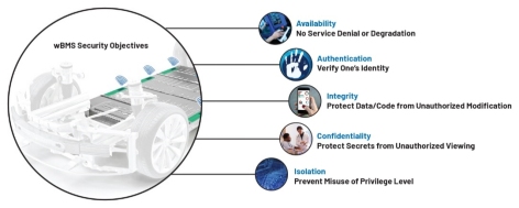 只有在電動汽車電池的全生命周期內(nèi)確保從器件到網(wǎng)絡(luò)的安全性,才能實(shí)現(xiàn)wBMS技術(shù)的全部優(yōu)勢。考慮到這一點(diǎn),安全性要求采取系統(tǒng)級設(shè)計(jì)理念,涵蓋過程和產(chǎn)品。