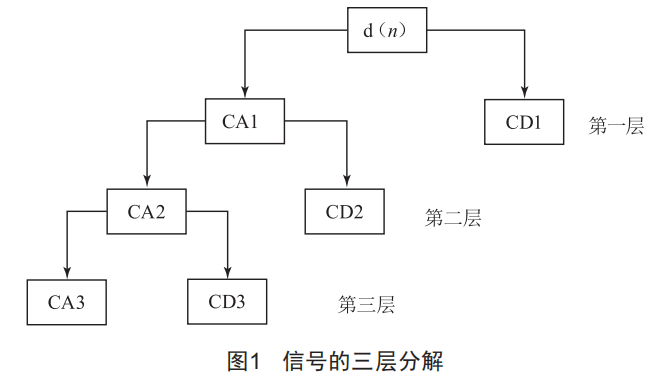 在圖1中,噪聲信號(hào)CA1、CA2和CA3分別是分解的1~3層的低頻部分,CD1、CD2和CD3是分解的1~3的高頻部分。