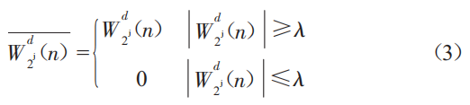 選擇處理小波變換系數(shù)的閾值,有兩種常見的方法:硬閾值處理和軟閾值處理。硬閾值處理是將信號(hào)小波變換系數(shù)的絕對(duì)值與閾值進(jìn)行比較,小于或等于閾值的小波系數(shù)變?yōu)榱?高于閾值的點(diǎn)保持不變。