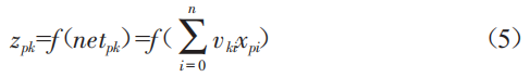 以三層迭代優(yōu)化為例,設(shè)初始閾值輸入、中間閾值、輸出閾值分別為n、g、m,輸入樣本總數(shù)為P,xpi表示第p樣本的第i輸入值,k億i表示輸入第i節(jié)點(diǎn)到中間第億節(jié)點(diǎn)的權(quán)值,wj億為中間第億節(jié)點(diǎn)到輸出第j節(jié)點(diǎn)的權(quán)值。則中間第億節(jié)點(diǎn)的輸出為: