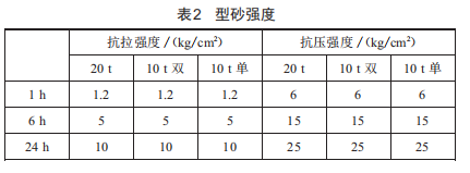(1)型砂強度的確定 ,如表2所示。