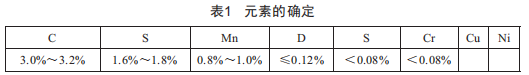 新生鐵140 kg(25%) ,廢鋼250 kg(45%) ,廢舊生鐵100 kg ,回爐件60 kg ,配料錳為0.608 , 去除燒損每批需加入6.5 kg錳 ,配料硅為0.886 ,去除燒損每批需要加入6 kg硅 ,配料碳為2.20 ,依靠熱風沖天爐自身的增碳。