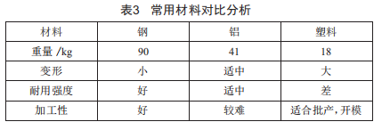 對設(shè)計(jì)常用的幾種材料進(jìn)行對比分析 ,如表3所示。