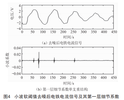 由圖3可知,由于信號中噪聲含量過大,無法對電流下降點進行定位,因此需要先進行去噪處理。