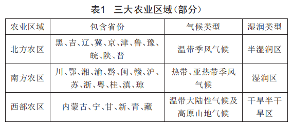 以400mm年降水線為界,中國的農(nóng)業(yè)可根據(jù)地區(qū)差異性分為東部與西部:以溫帶、亞熱帶劃分,則可以分為南方與北方。為了研究農(nóng)業(yè)電排灌負(fù)荷在不同區(qū)域的情況,結(jié)合我國部分行政區(qū)劃,在樣本滿足實(shí)證研究要求的基礎(chǔ)上,詳細(xì)總結(jié)了不同區(qū)域間農(nóng)業(yè)電排灌的最優(yōu)負(fù)荷情況。本文把中國分成北方、南方、西部三大農(nóng)業(yè)區(qū)域,在同一農(nóng)業(yè)區(qū)內(nèi),氣候條件、干濕情況較為相似。劃分結(jié)果如表1所示(未包含所有省級行政區(qū)劃),雖然部分省份同屬多個(gè)區(qū)域,但考慮到統(tǒng)計(jì)年鑒中數(shù)據(jù)均是分省數(shù)據(jù),故同一省只能歸屬一個(gè)農(nóng)業(yè)區(qū)。