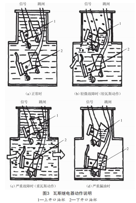 發(fā)出輕瓦斯保護(hù)動作信號時,是發(fā)生了輕微故障;而發(fā)出重瓦斯保護(hù)動作,則是發(fā)生了嚴(yán)重故障。