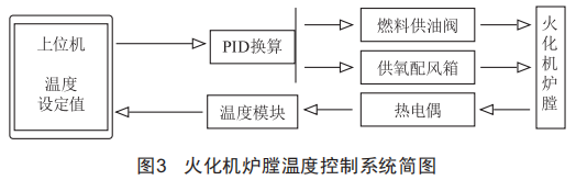 溫度控制對火化機的遺體焚化必不可少 。爐膛溫度過低 ,會造成遺體燃燒不充分 ,燃燒時間過長 ,浪費燃料 ,更容易產(chǎn)生二嗯英等有毒有害氣體 ,造成環(huán)境污染:反之 ,溫度過高 ,爐膛內(nèi)的耐火材料容易出現(xiàn)崩裂分象 , 導(dǎo)致爐膛的使用壽命大大縮短 。因此 ,爐膛的溫度控制非常重要 。爐膛的溫度控制離現(xiàn)關(guān)鍵在于控制燃燒時的供油量及助氧風機的供風量這兩個重要的因素 ,鑒于此 ,在控制系統(tǒng)中采用電控元件使供氧量和供油量實現(xiàn)自動調(diào)節(jié) , 從而大大降低了火化工的勞動強度 。 PLC通過PSD程序運算 ,控制電控元件調(diào)節(jié)供油和供氧開度的大小 ,實現(xiàn)當爐膛內(nèi)的溫度過高或過低時 ,PLC立即發(fā)出指令進行調(diào)節(jié) ,這樣就能使爐膛內(nèi)的溫度維持在設(shè)定值 ,達到最佳的燃燒效果 。爐膛溫度控制系統(tǒng)簡圖如圖3所示。