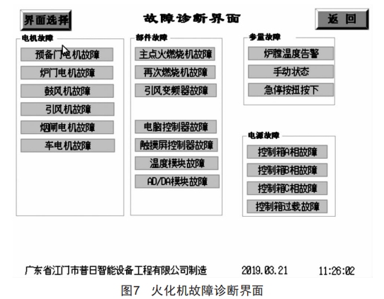 當系統(tǒng)中出現(xiàn)故障時 ,PLC將通過程序自動識別并判斷該程序是否再機械執(zhí)行 , 同時在故障顯示界面中顯示故障的部件名稱及指示標志 ,并做記錄存檔 ,方便日后維護。